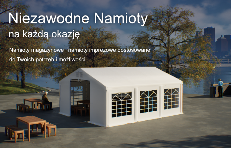 Jesteśmy zespołem z 10-letnim doświadczeniem w sprzedaży namiotów dla różnych branż. Nasza oferta skierowana jest do firm i osób prywatnych. Znajdziesz tu wysokiej jakości, przystępne cenowo namioty imprezowe, magazynowe, ogrodowe, gastronomiczne, kontenerowe i hale namiotowe.Solidne poszycia, mocne konstrukcje - a przy tym łatwy i szybki montaż - to tylko kilka z wielu zalet naszych namiotów imprezowych i namiotów magazynowych.