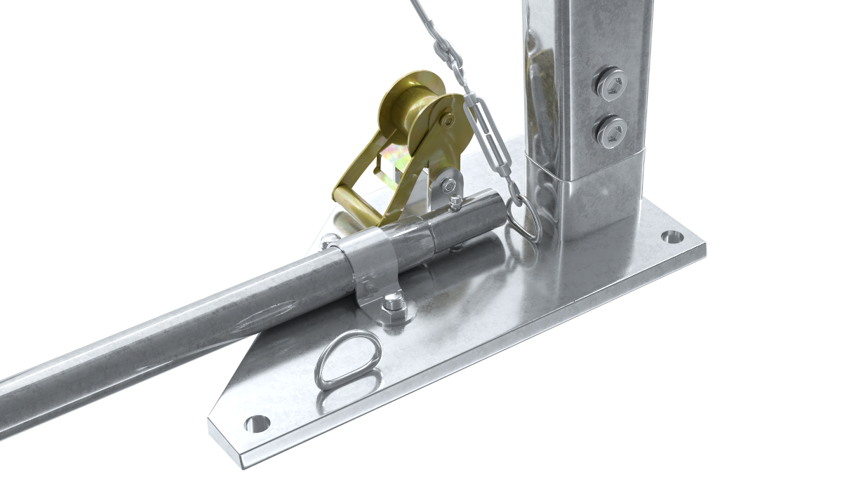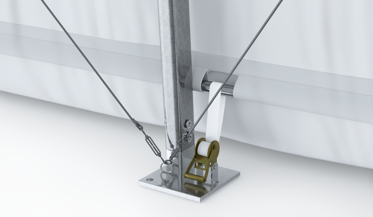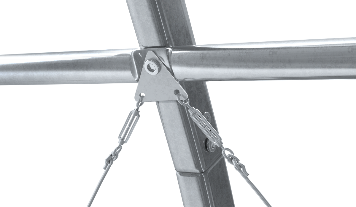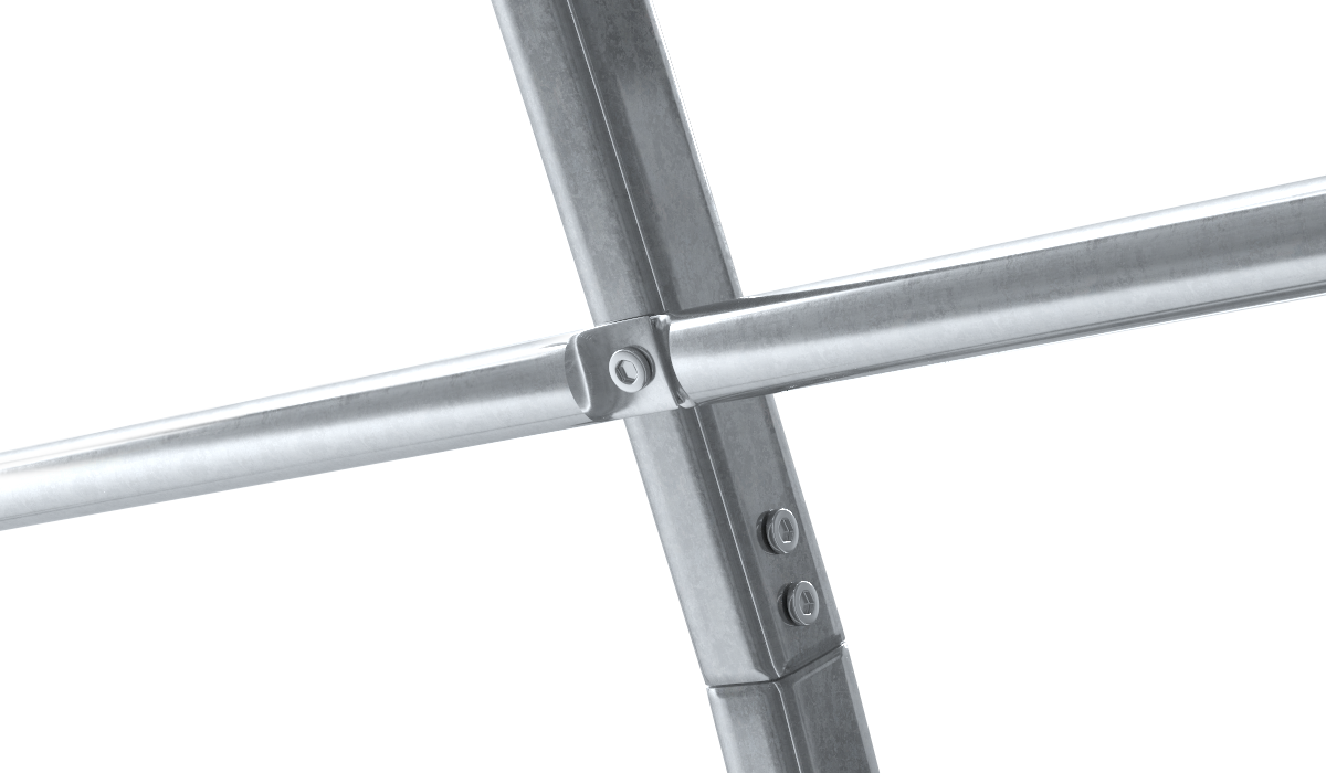 Stalowa konstrukcja z mocnymi stopami i solidnymi łączeniami za pomocą śrub przechodzących na wylot zapewnia hali łukowej stabilność i wytrzymałość. Pionowe rury wykonane w systemie wtykowym, łączone za pomocą podwójnych śrub M8 wzmacniają stelaż. Poziome rury mocowane bezpośrednio do łuków pionowych za pomocą śrub M10 zwiększają sztywność konstrukcji. Zastosowanie nakrętek samokontrujących oraz starannie dobranych śrub minimalizuje konieczność konserwacji w przyszłości. Na stabilność konstrukcji hali łukowej wpływa zastosowanie systemu naciągów, który przeciwdziała odkształceniom zadaszenia. Tak wzmocniona hala łukowa sprawdzi się do zastosowania całorocznego, zarówno w przemyśle, rolnictwie, jak i motoryzacji. Rury konstrukcji łukowej: fi ok. 56 x 86 mm, grubość ścianki ok. 2 mm, płatew: fi ok. 48 x 1.5 mm