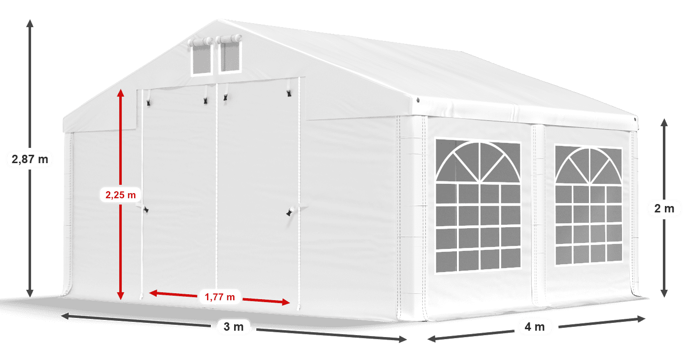 - Ściany boczne SD PVC ok. 2 x 2 m (polichlorek winylu) 500g/m2 - Okna witrażowe 140 x 130 cm