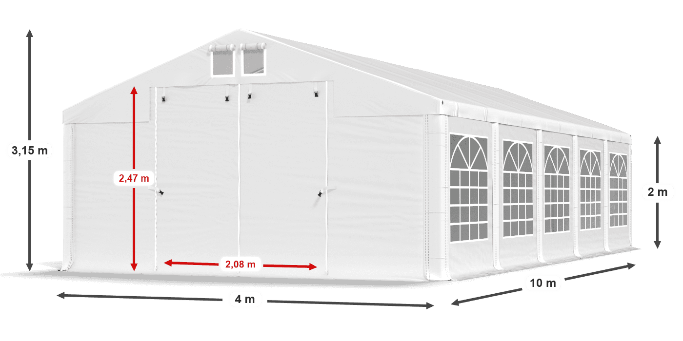 - Ściany boczne SD PVC ok. 2 x 2 m (polichlorek winylu) 500g/m2 - Okna witrażowe 140 x 130 cm