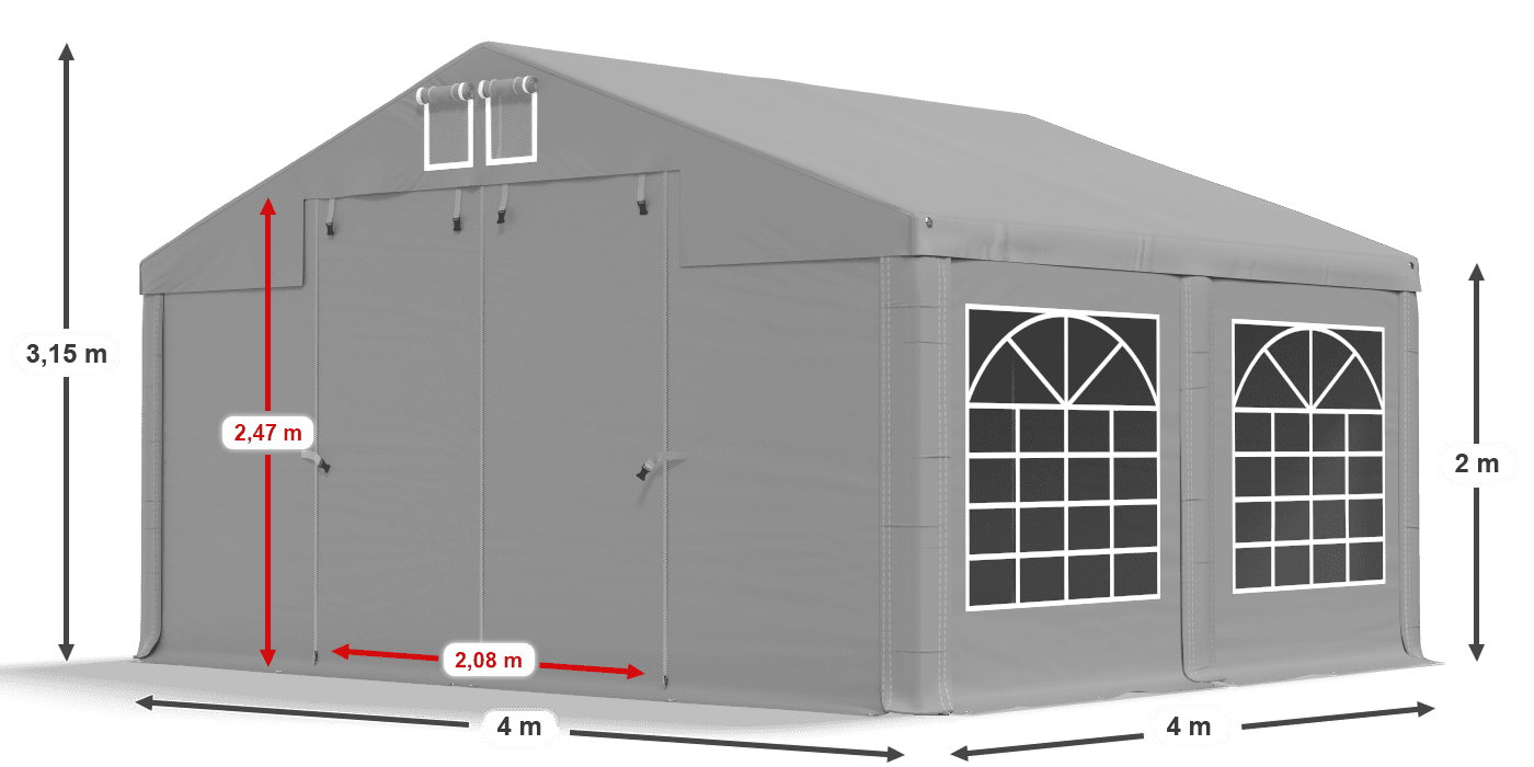 - Ściany boczne SD PVC ok. 2 x 2 m (polichlorek winylu) 500g/m2 - Okna witrażowe 140 x 130 cm