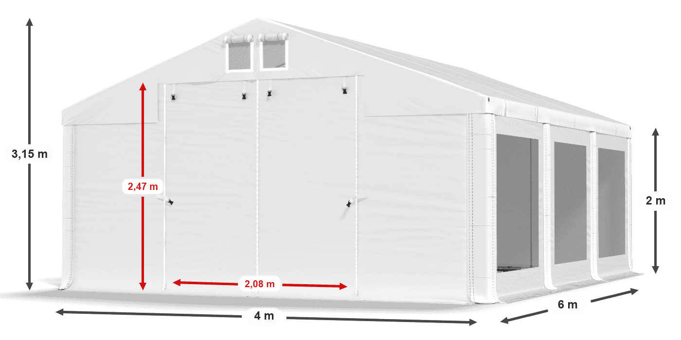 - Ściany boczne MS PVC ok. 2 x 2 m (polichlorek winylu) 580/m2 - Okna transparentne 144 x 148 cm