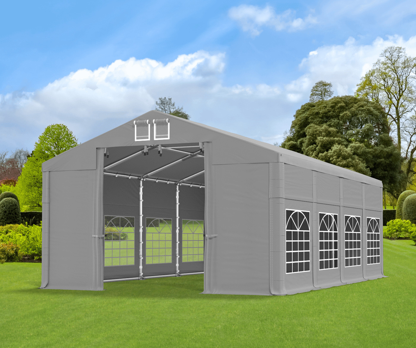 • Całoroczny namiot imprezowy 4x8 m z eleganckim poszyciem z oknami witrażowymi. Namiot łatwo jest złożyć i przenieść - konstrukcja o wysokości 3 m. Namiot doskonale sprawdzi się jako namiot ogrodowy, namiot handlowy i namiot cateringowy.