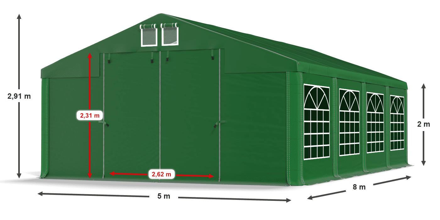 - Ściany boczne SD PVC ok. 2 x 2 m (polichlorek winylu) 500g/m2 - Okna witrażowe 140 x 130 cm