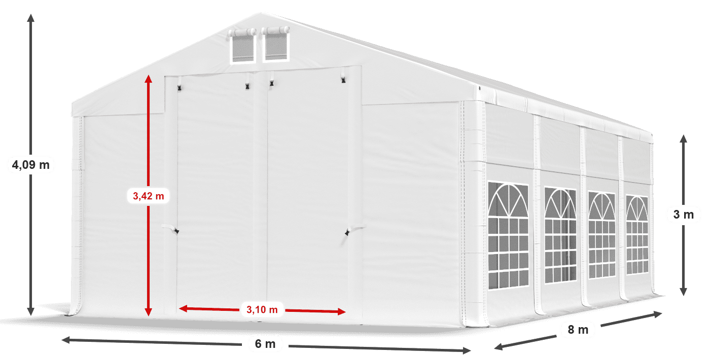 • Całoroczny namiot imprezowy 6x8 m z eleganckim poszyciem z oknami witrażowymi. Namiot łatwo jest złożyć i przenieść - konstrukcja o wysokości 3 m. Namiot doskonale sprawdzi się jako namiot ogrodowy, namiot handlowy i namiot cateringowy.