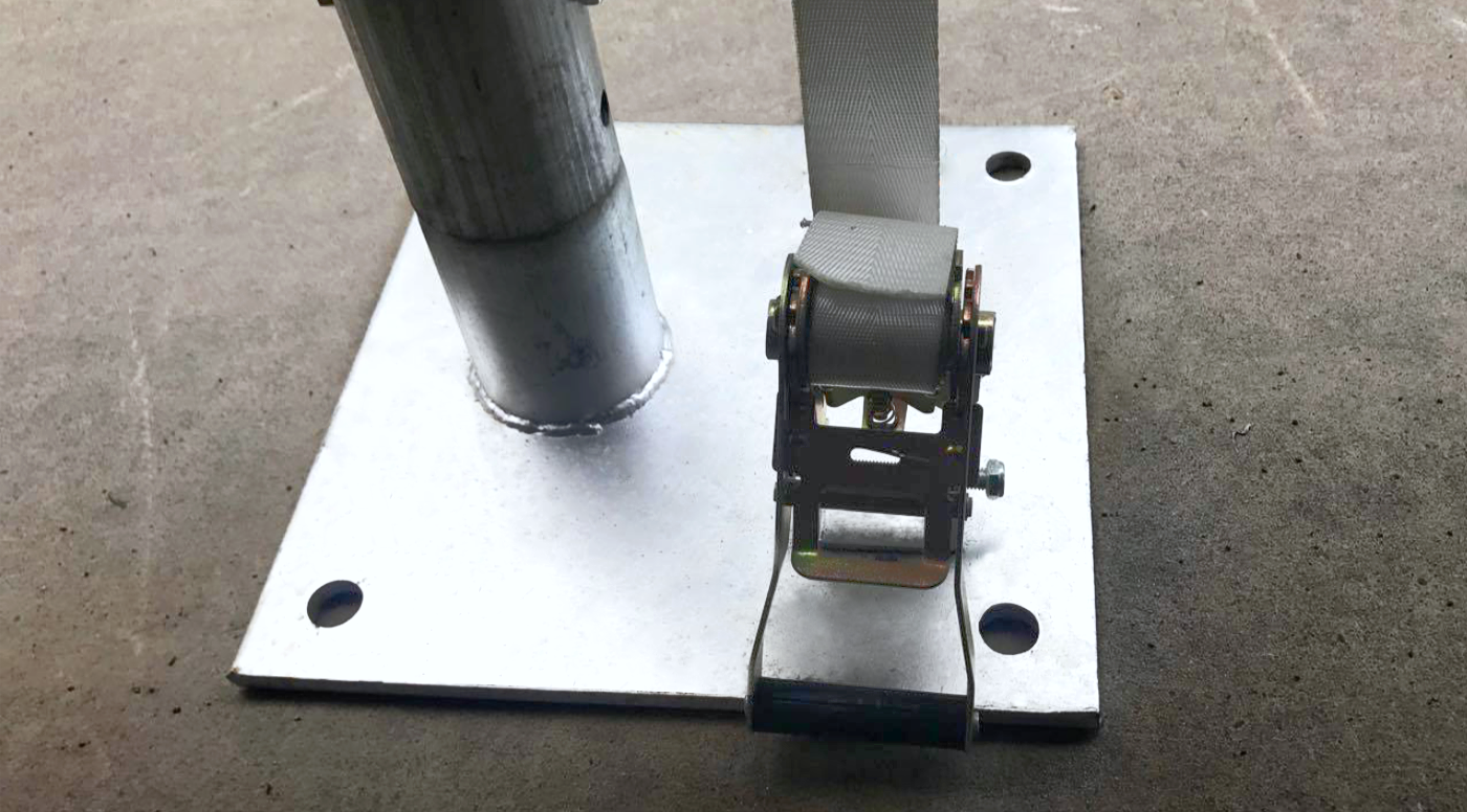 W tej konstrukcji zastosowaliśmy duże, czworokątne stopy o zwiększonym punkcie podparcia 30x30cm oraz stopy narożne 30x40cm. Zastosowane stopy posiadają 4 otwory kotwiące konstrukcję do podłoża.