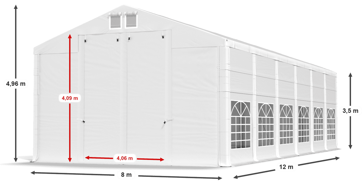 - Ściany boczne SD PVC ok. 2 x 2 m (polichlorek winylu) 500g/m2 - Okna witrażowe 140 x 130 cm