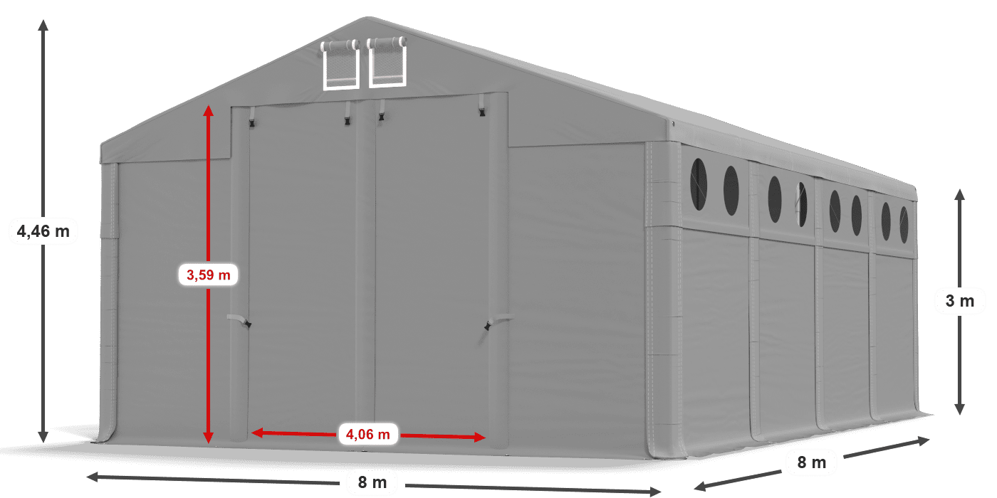 - Podniesienie ściany bocznej MS PVC ok. 2 x 0.5 m(polichlorek winylu) 580g/m2 - Okna doświetlające 39cm średnica