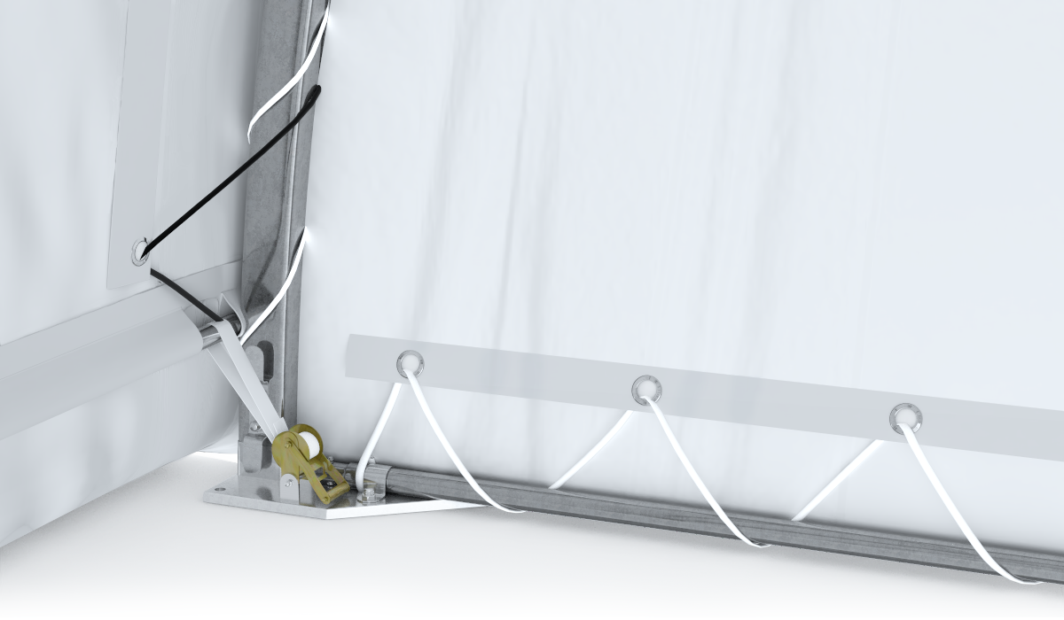 Wewnętrzny system napinania odpowiada za równomierne rozciągnięcie plandeki, co zapobiega tworzeniu się nierówności i zastoisk wodnych.