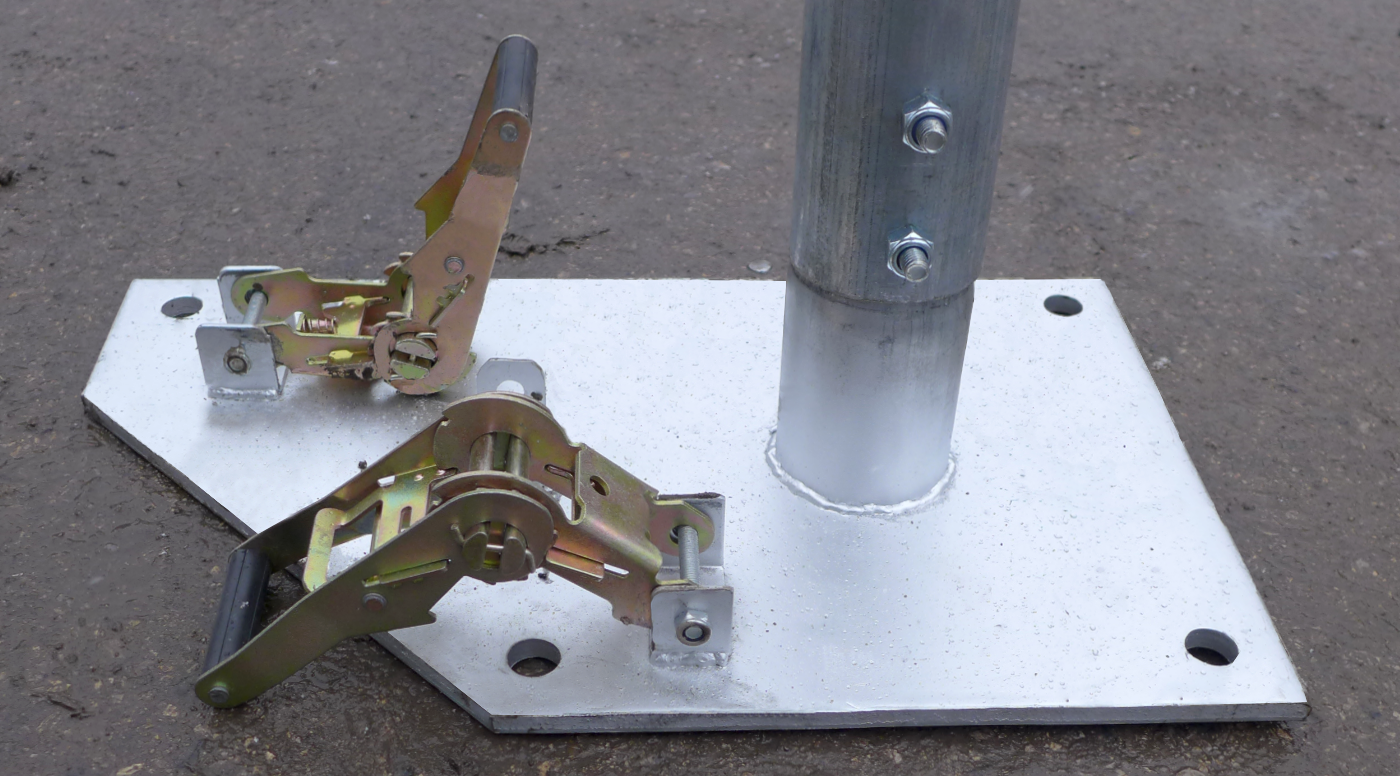 W tej konstrukcji zastosowaliśmy duże, czworokątne stopy o zwiększonym punkcie podparcia 30x30cm oraz stopy narożne 30x40cm. Zastosowane stopy posiadają 4 otwory kotwiące konstrukcję do podłoża.