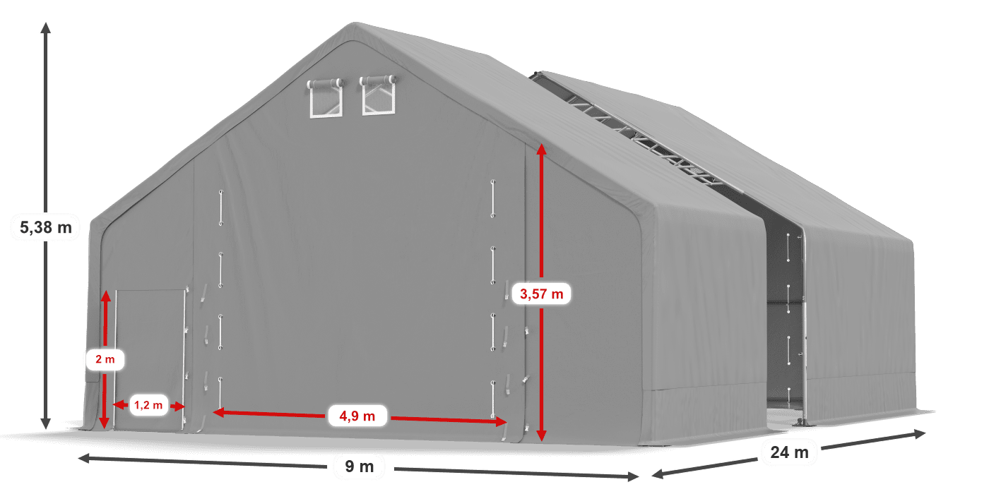 Poszycie w namiotach serii Arctic stanowi jedną, integralną część. Namiot posiada dodatkowe, boczne wejście, które umożliwia wchodzenie i wychodzenie z namiotu bez konieczności otwierania głównego wjazdu. Poszycie w tej hali namiotowej jest ognioodporne.