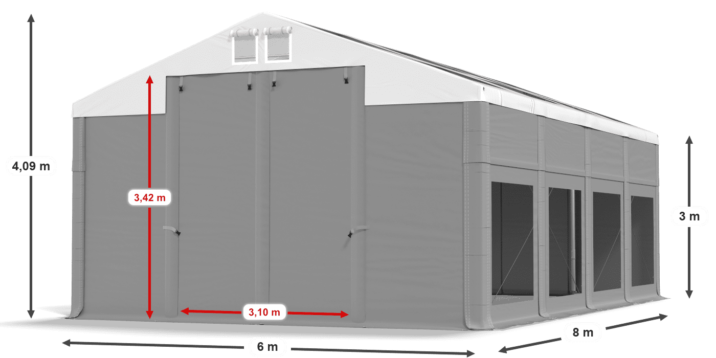 - Ściany boczne MS PVC ok. 2 x 2 m (polichlorek winylu) 580/m2 - Okna transparentne 144 x 148 cm